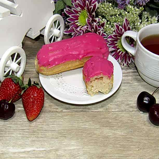 Эклер с нежным Pin-Up сливочным кремом с добавлением варёного сгущённого молока и шоколадной глазурью.