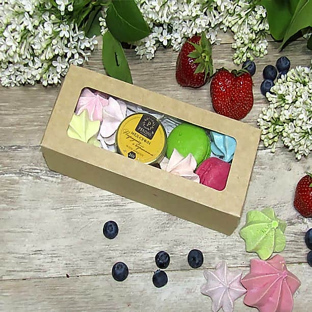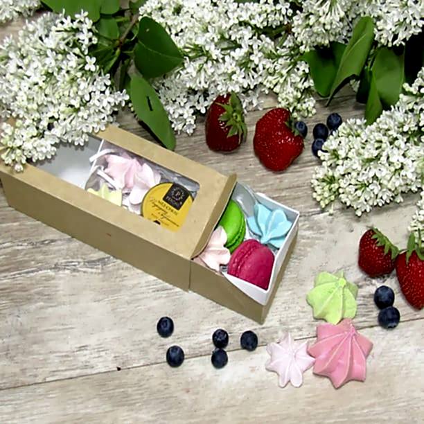 Роскошное лакомство! Это отличный вариант стильного и недорого Pin-Up В набор входят макаруни, безе и мёд-суфле*. *Марка меда, вкус, могут отличаться от представленных на фото
